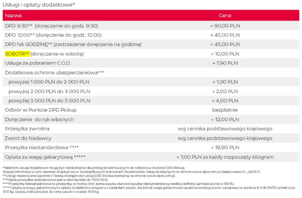 - Niektóre paczki, takie jak duże lub nietypowe przesyłki, mogą nie kwalifikować się do weekendowej dostawy.
